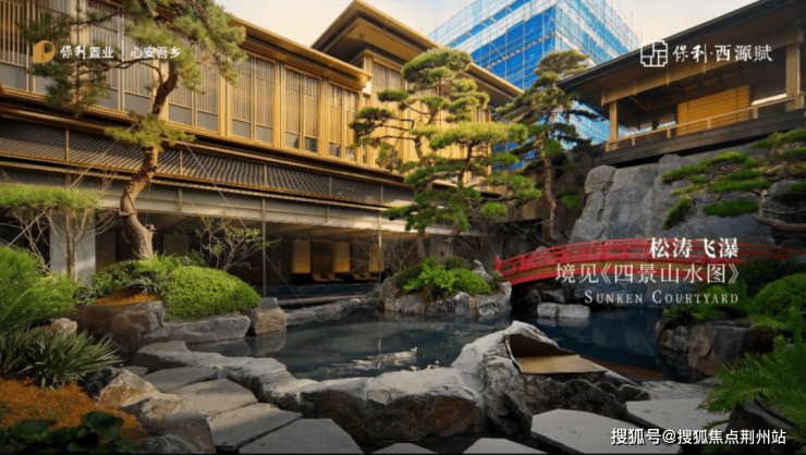 归家礼序:奢阔门头+一轴八境园林:打造约63米宽、9.1米高的超全画幅恢宏门庭,融合金属格栅与天然奢石,以酒店级匠造标准诠释当代世家气派;园林布局取意三大宋画,融合杭州山水精粹,打造“一轴八境”景观,通过假山、叠水、屏风等元素,再现《四景山水图》的移步易景之美,窗前皆有景可赏。