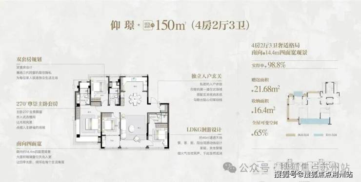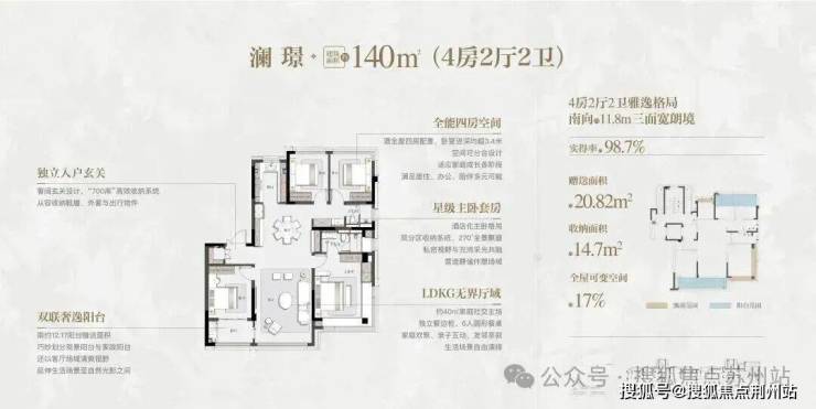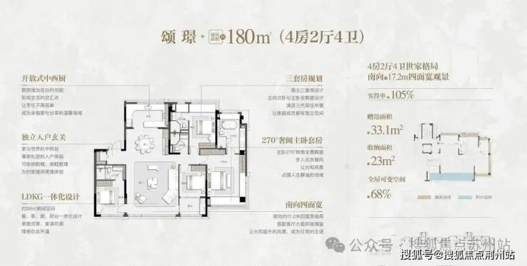 洋房产品也非常可圈可点,户型140㎡起步,全部都是大四房,得房率非常高。