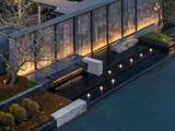 入口区域,以礼仪水景入境,搭配造型黑松点缀,景观花境围合水景种植,增强归家仪式感,给与业主尊贵的归家感。