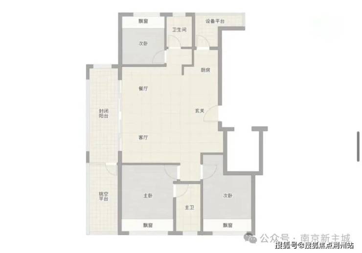 119平分布在5-11层的小区外围一个单元,讲人话就是靠马路,从户型图可以看到,好像做的是一梯两户设计,如下图所示: