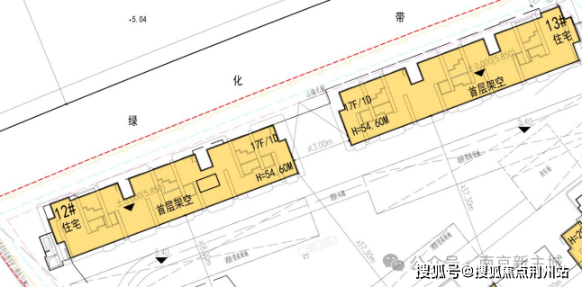 17层小高层做了首层架空层,另外5栋西边局部做了架空层,如下图所示: