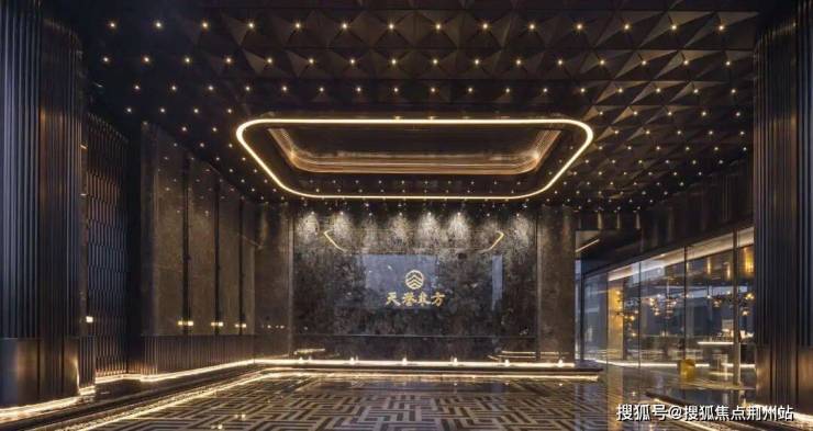 提取时尚元素,采用星光钻石穹顶,万字纹石刻地面铺贴,打造高端度假酒店式示范区建筑形象,彰显豪宅气质。