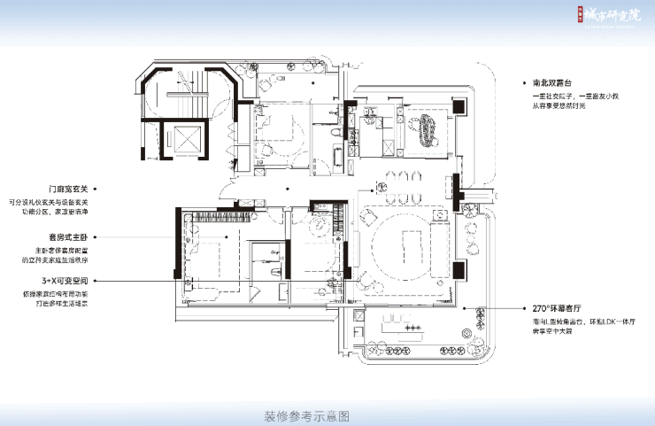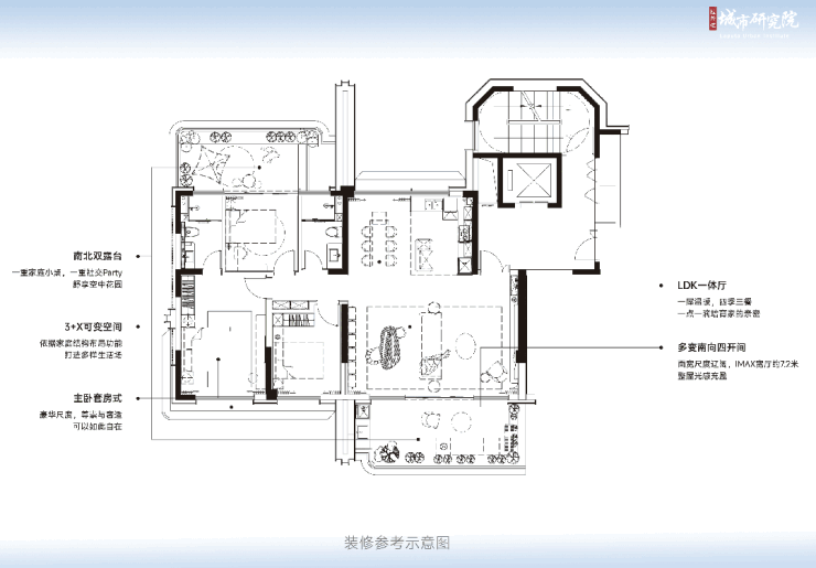 156㎡偶数层户型:项目打造南向270°环形跑道式浮岛大露台,搭配6.3米挑高冲击力超强,采光面、景观面都开到了IMAX级。