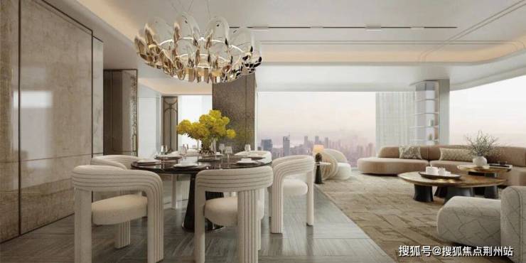 大成乐府以现代感极强的类公建化外立面重塑城市封面,大面积玻璃配合行业头部窗墙比设计,尽显国际化美学风范。曲面玻璃元素贯穿建筑细节,270°曲线转角全景玻璃与“上帝弧线”轮廓交叠,勾勒江水流动般的天际线。