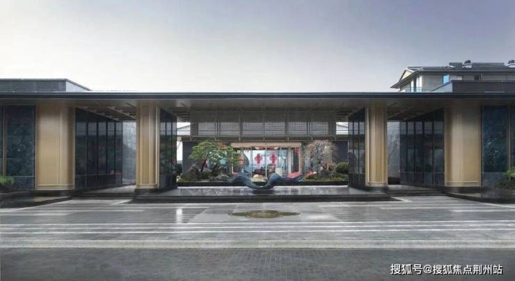 府门横亘如卷,以现代形制承袭书院门第的礼序威仪,两侧普拉达绿奢石静立,石纹如水,与香槟色金属格栅一冷一暖、一刚一柔。门前甄选黑松对称而立,枝干虬曲如笔,雅致水景,潺潺流动,心绪至此得以安宁。未来,每日归家,都是一场从繁华向静谧的从容之旅。