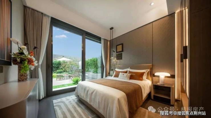 室内空间排布也充分结合居住理念,一楼独立套房,方便家里长辈起居;二楼三卧室全朝南,开间都超过10米,全景落地玻璃,风景如画。堪比星级酒店总统套房的主卧,带独立卫浴间,配上双台盆+大浴缸,以及走入式衣帽间,既是太太的更衣室,也是先生的名表收纳室。