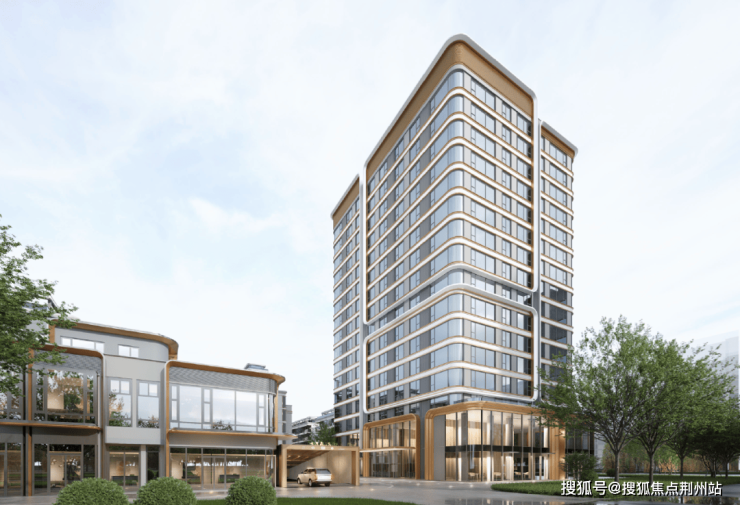 根据效果图,酒店外立面采用了曲线元素,软化了建筑棱角,减少了冰冷感,更有辨识度同时,与一旁商业及住宅风格和谐统一。