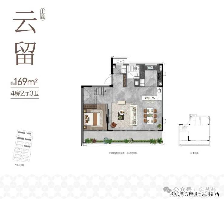 约169㎡上叠,4房3卫,带屋顶大露台。