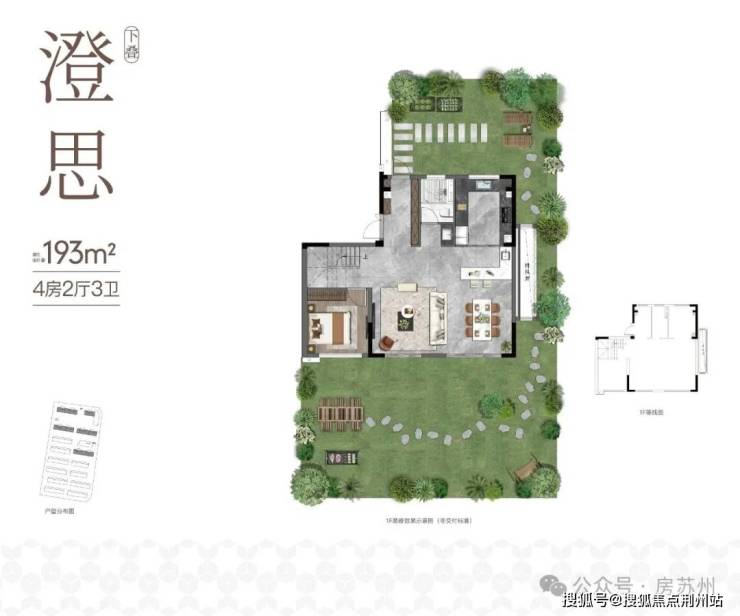 叠加约169/193㎡,均为4房3卫的舒适户型,房间全部朝南+客厅挑空。