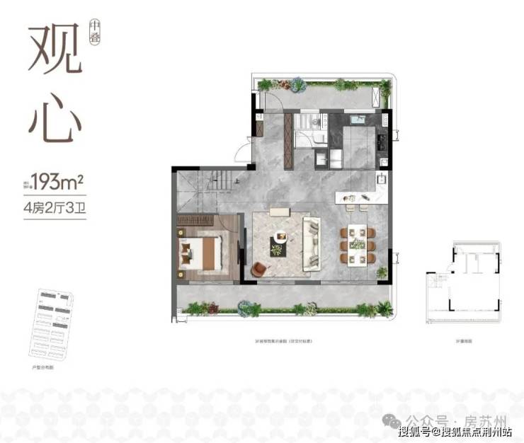 三楼是超大行政套房,并带了了一大露台,同时还赠送一个无需二次改造的顶层露台。