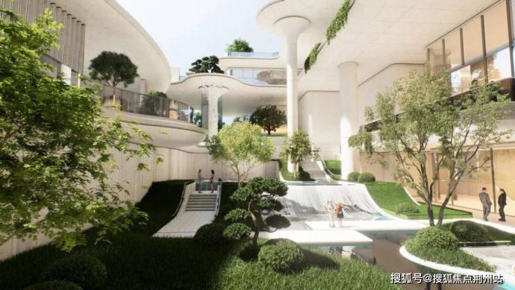 作为华润置地首个「生机之环」实践样本,长江天际以立体思维重构社区维度,将人行、车行、服务、活动与自然五大系统深度融合,创造真正意义上的多元场景共同体。罕见叠水中庭纵贯地上与地下,将天光引入空间深处,将室内空间室外化、立体化、交互化,彻底打破空间界限。而「生境山谷」以约13米高云瀑为视觉核心,构筑3级流水、5层标高的竖向生态山谷系统,在垂直维度营造出独特的城市微气候环境,成为自然、艺术与生活交融的精神场域。