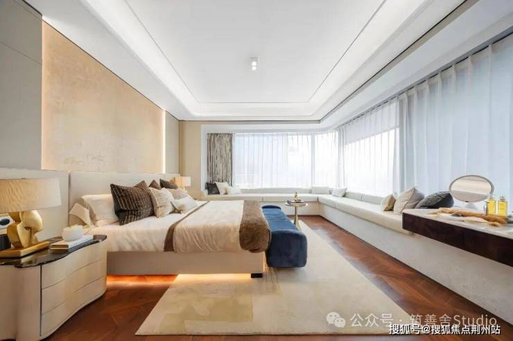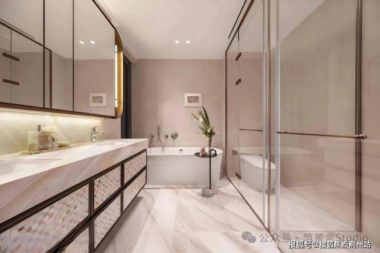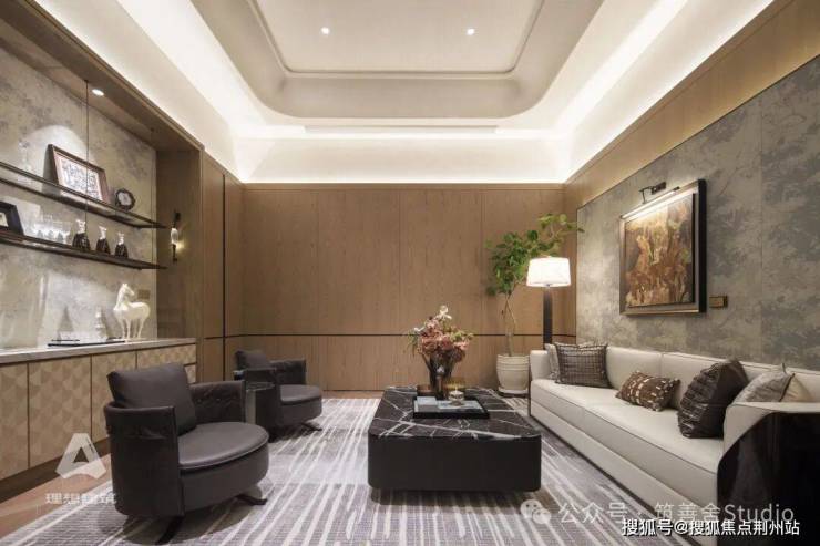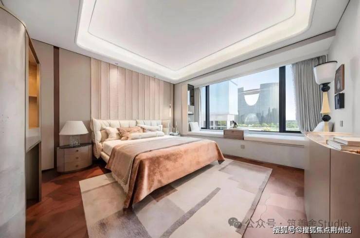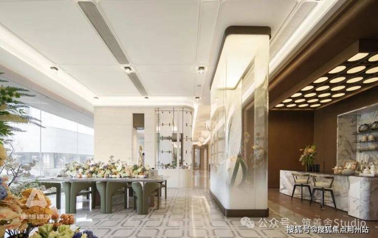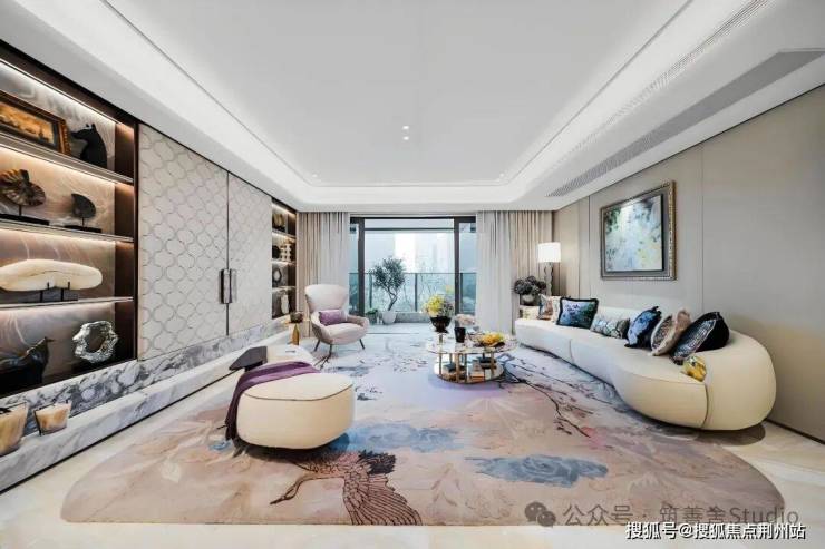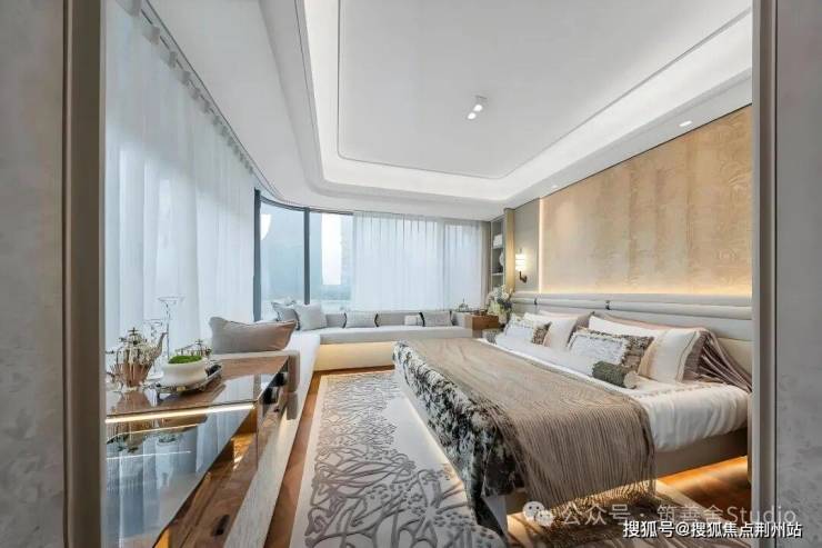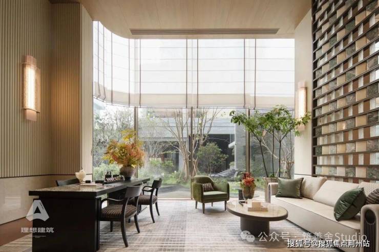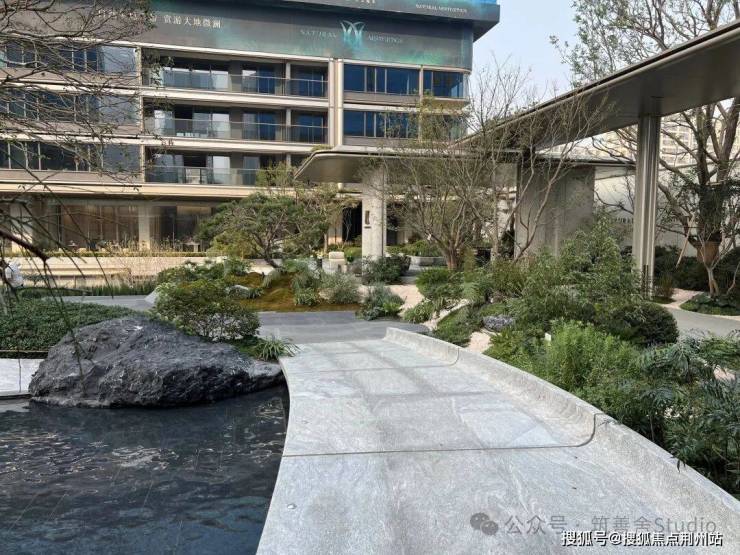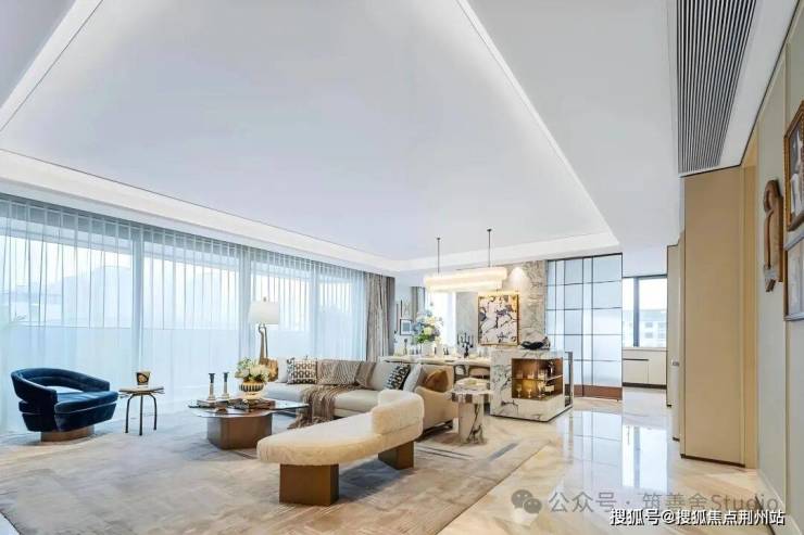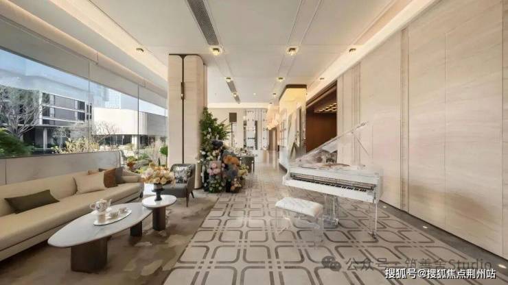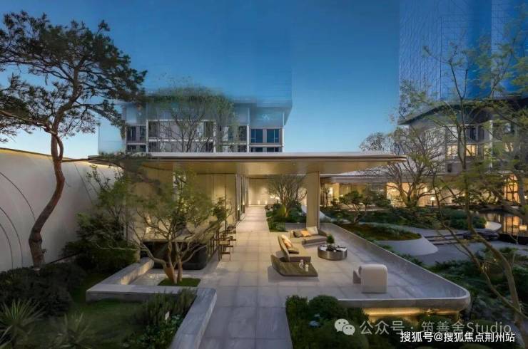 外立面以灰白色玻璃幕墙为主调,点缀金色线条,叠墅采用流线型曲面设计,巧妙呈现江潮金澜的意境。