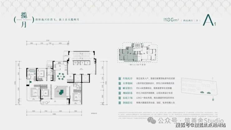 建面约186㎡户型,四开间朝南设计,约15.9米超大面宽,让阳光满溢生活,让自然常伴日常。