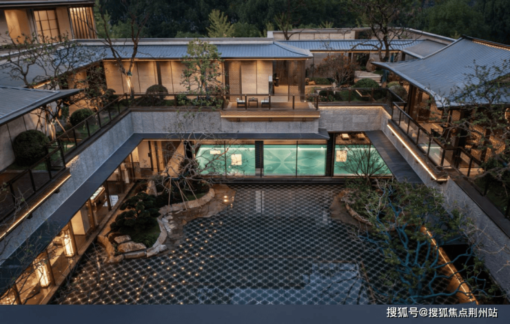 外立面香槟金铝板线条、大面玻璃幕墙结合,小区内规划了下沉式会所“宸光会”,内含恒温泳池、健身房、私宴厅等。环绕会所的庭院以松、石、水为元素,营造出都市中难得的静谧庭院。公区大量运用石材、金属与木饰面,单元大堂挑空设计,酒店式入口,从第一印象奠定豪宅基调。