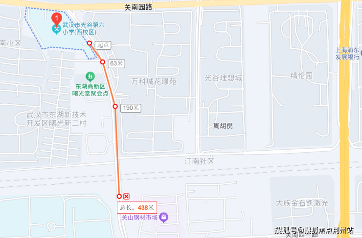 光谷六小同联发光合新澍距离示意图