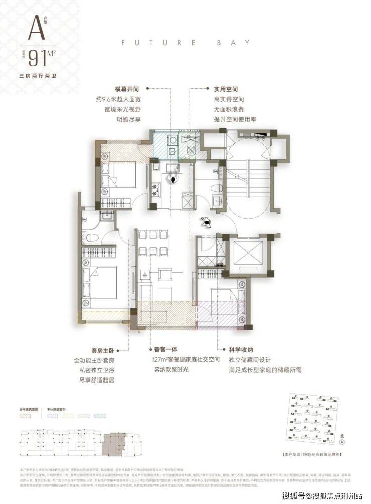 云之城的起步户型是91㎡的三房两厅两卫+独立储藏间。三个卧室都足够大,不像市面上一些小户型,说是三房但实际有一个房间只能做书房。