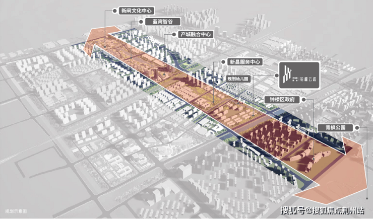 板块规划“一轴五片,双心双环”空间结构,以蓝湾智谷、创新高地为目标,形成以钟楼区政府、区文化中心、生态中心、产城融合中心等城市重要功能集聚轴。