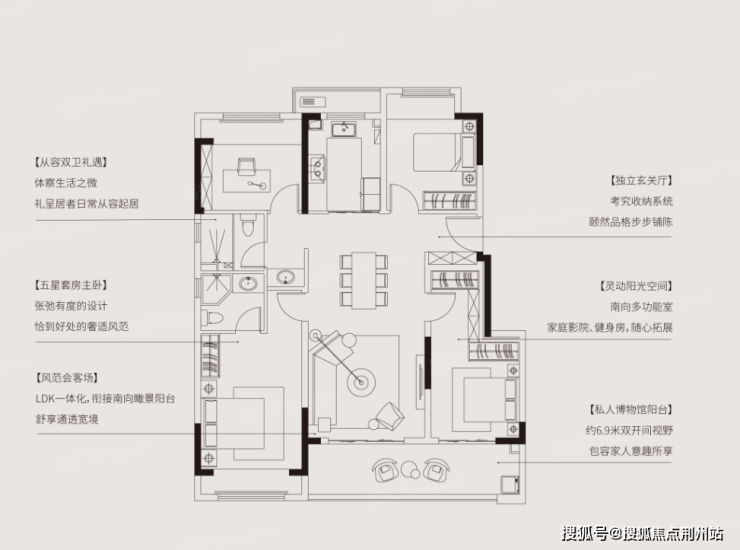 再依赖功能区、个性化改造,可以输出一个家庭20年,甚至50年的居住解决方案,妥妥的铂樾云庭王牌户型。