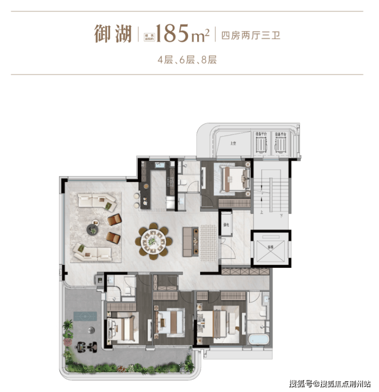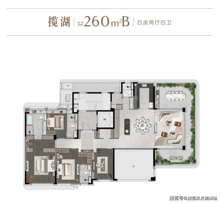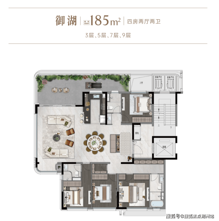 洋房为四代宅作品,户型为全新LDKG一体化设计打造超宽景生活,客厅留有双层挑空,依户型不同分三面环绕式空中花园及转角式空中花园,打造新一代宽景湖居生活。