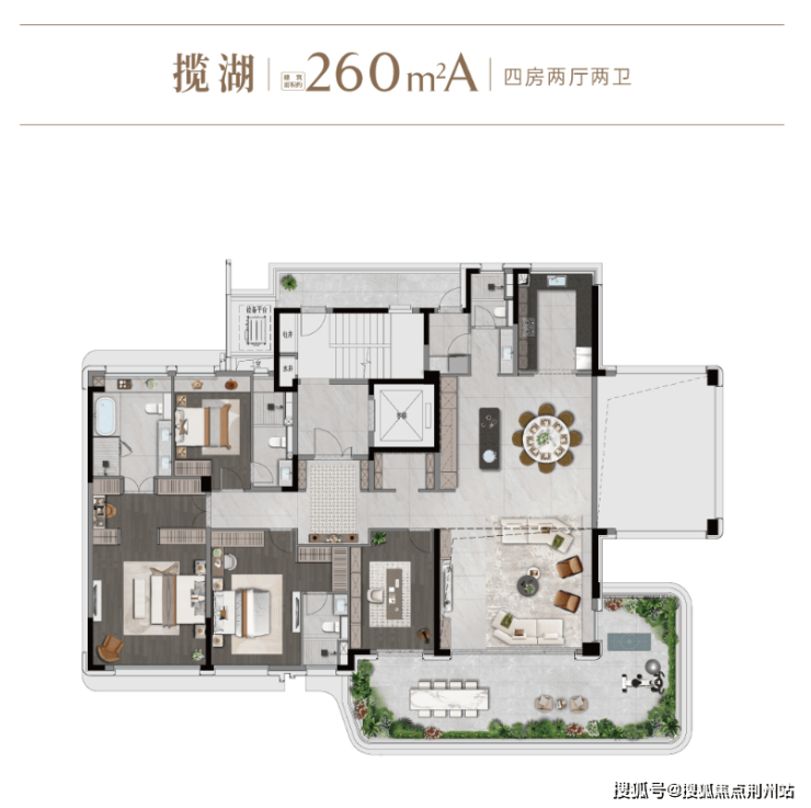 住宅户型:四代宅洋房185㎡、260㎡;合院别墅 330、390、420、500、550㎡