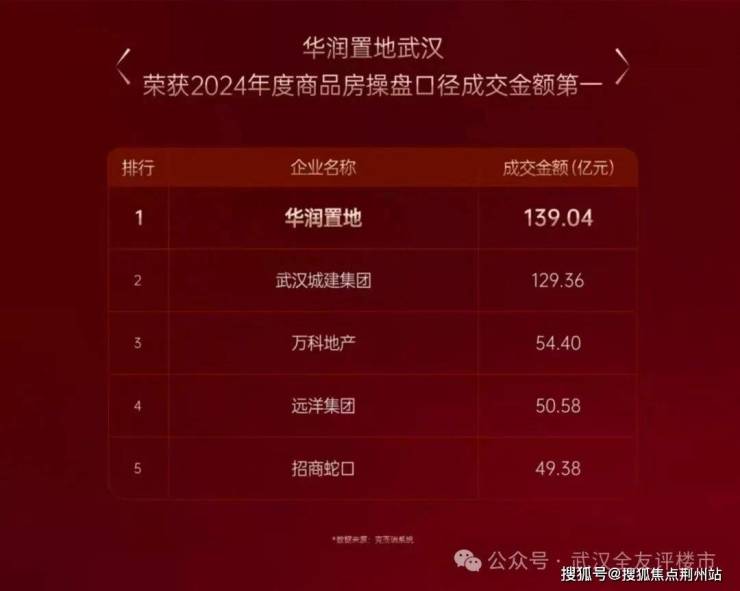 华润置地入汉20年,为更好的武汉谋篇布局,荣登2024年武汉商品房操盘口径TOP1。