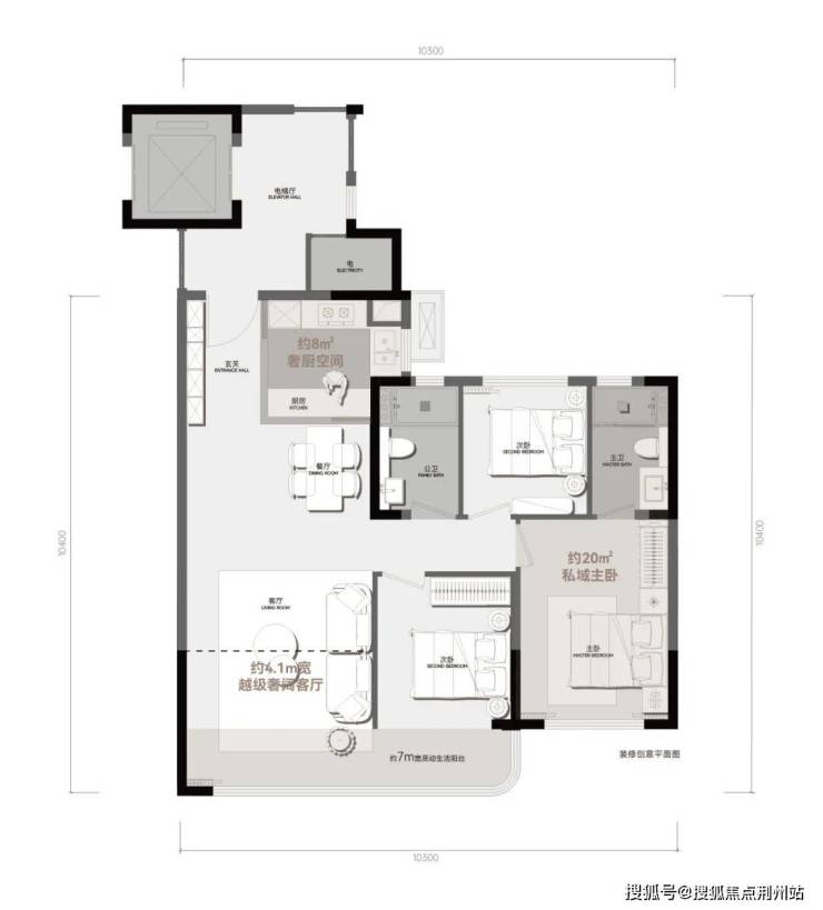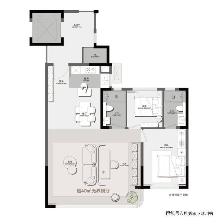 约7m无界横厅+转角全景阳台,约20㎡主卧套房,人人舒享
