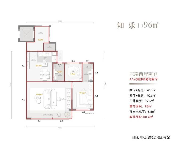 超数值实得面积 | 96㎡享宽4.1m奢阔客厅 | 大三房功能兼顾