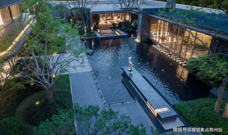 以涌泉水景为点睛之笔,将整体静景赋予动感,池底深色石材星斑点点,在涟漪中流转,宛若银河倾泻;营造出“明月松间照,清泉石上流”的东方意境。