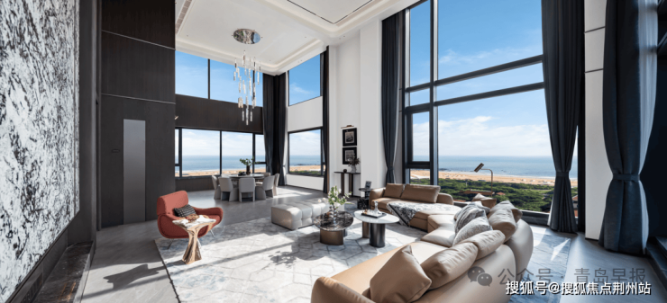 在社区规划与建筑设计上,海信·金沙滩展现出对品质的执着追求。为保障每户业主的观海视野,项目将社区整体抬高近6米形成台地布局,这一罕见做法即使一楼层也能享受无遮挡海景。