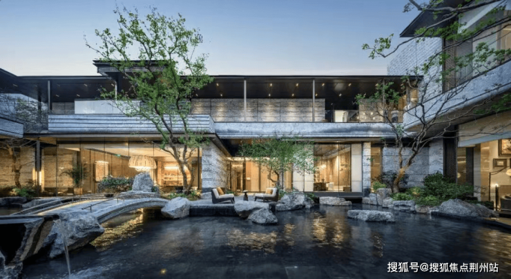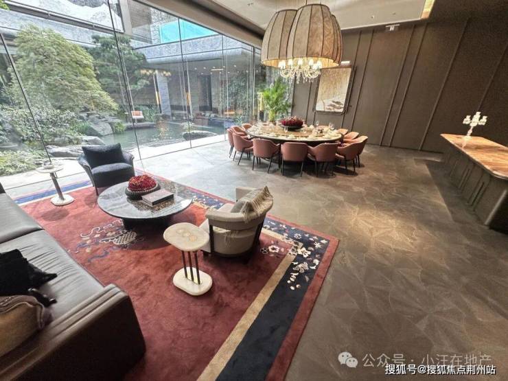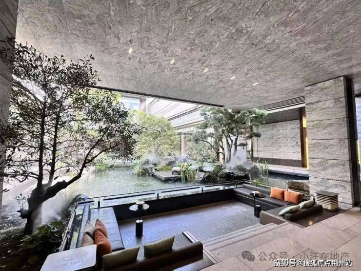 下沉式庭院:约1000方,复刻《溪山清远图》,从东侧“四水归堂”之门,经“十八学士”下沉庭院,景观设计层层递进,通过整面落地玻璃让下沉式景观和归家大门组合一整体,视觉冲击感强,悬挂户外泳池设计,地上地下互相成就景观视野。