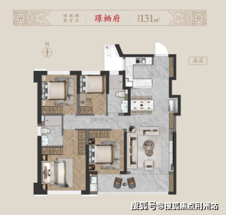 建筑立面:采用三段式新中式立面,局部使用定制铝板+石材,沉稳大气,彰显中式建筑精髓。