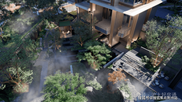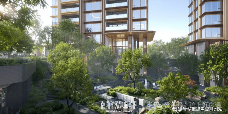 社区整体抬高1.3-1.4米,营造出“玉盘托珠”之势,社区价值与城市肌理无缝融合,营造城市更新级的社区内外高定场景。