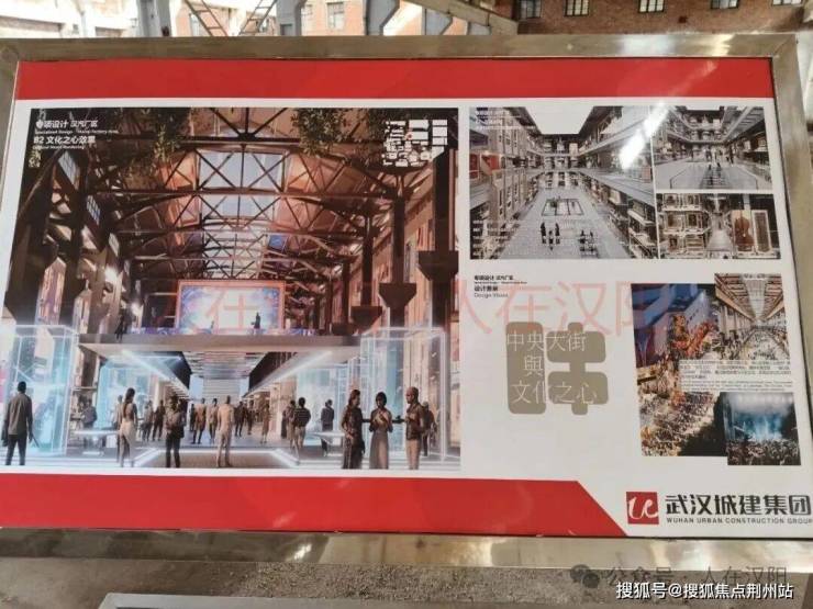 走进一个厂房,里面框架基本改造的差不多了,现场还展示了未来的整体效果图。