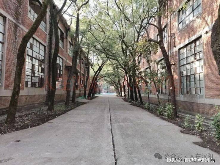 走进旧厂片区,红砖老厂房,搭配绿荫植被,非常有年代感。