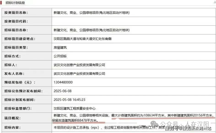 该项目规划总用地面积约139781㎡,最大计容建筑面积约108634㎡,计划投资约15亿元,主导功能为商业设施、艺术传媒、娱乐、文化设施、加油加气站、公园,建成后,将成为武汉的国际文旅会客厅,改写武汉内环文商旅格局。
