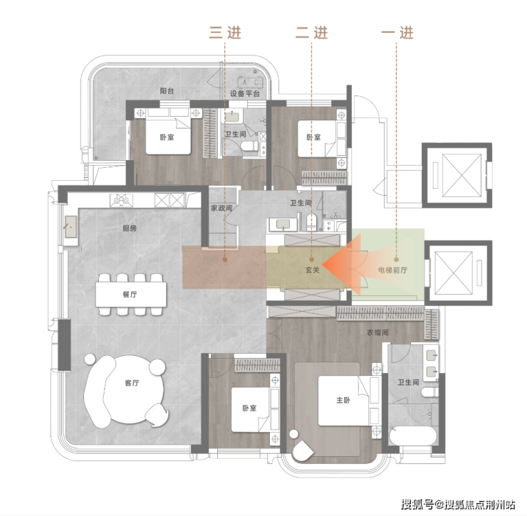 设计优势: 一梯一户,私属候梯厅化身“入户前庭”