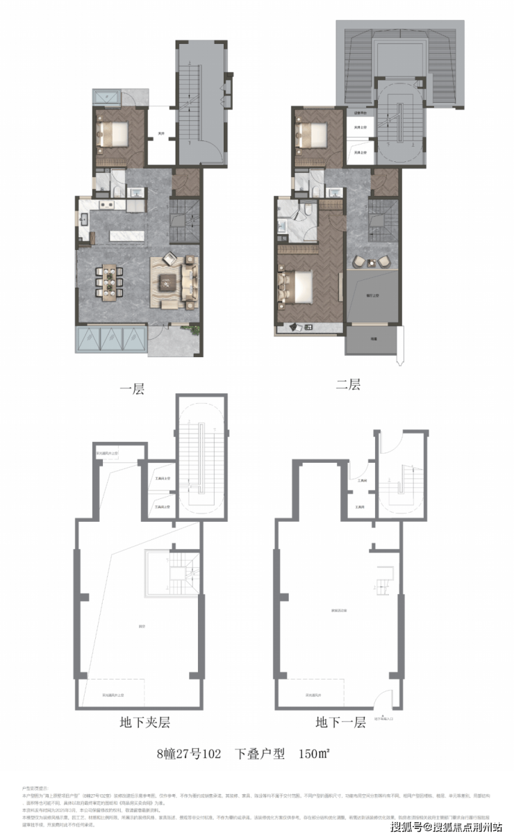 项目叠墅包含建面约141㎡上叠和建面约150㎡下叠.