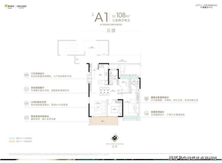 建面约108㎡的三房两厅两卫,总价约700万起,门槛友好,年轻家庭置业中环的不二选择。