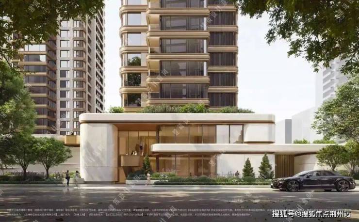 项目建筑外立面灵感源自名表马耳他十字工艺,采用名贵石材+金属铝板,以东方圆融思想整合以雕刻的石材锻打的金属,呈现出独特的人居地标美学。采用大量的玻璃幕墙,增强建筑的通透感和现代感。